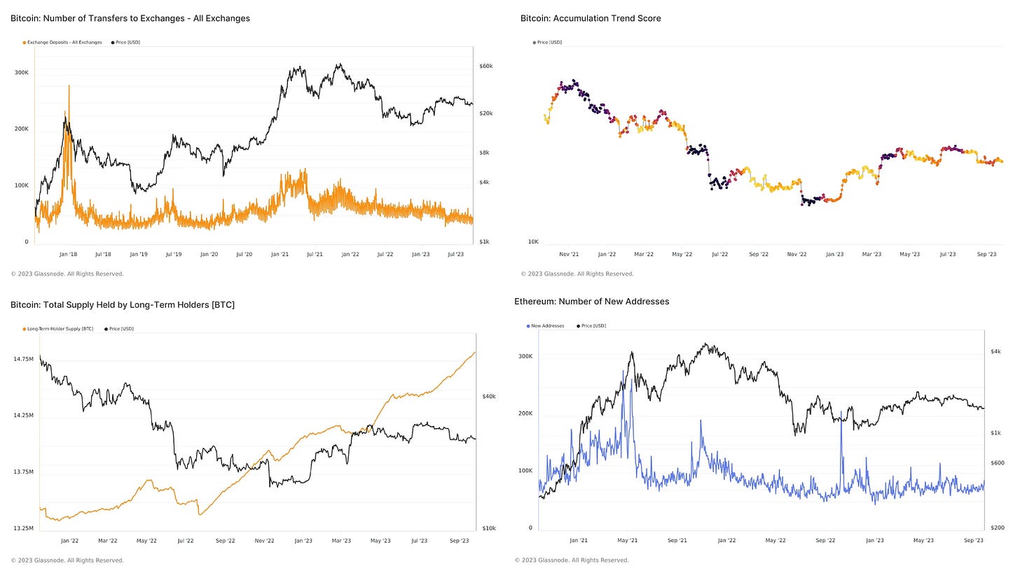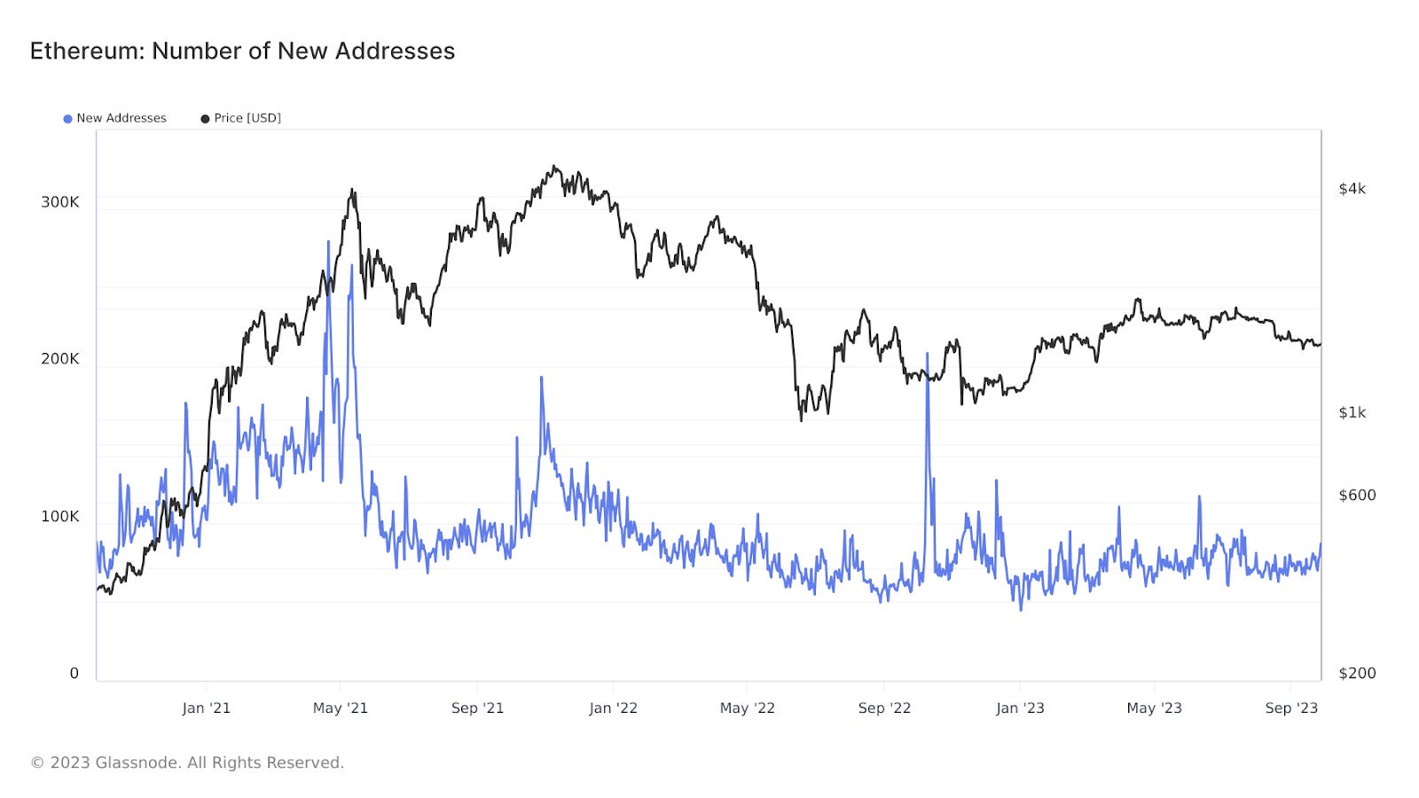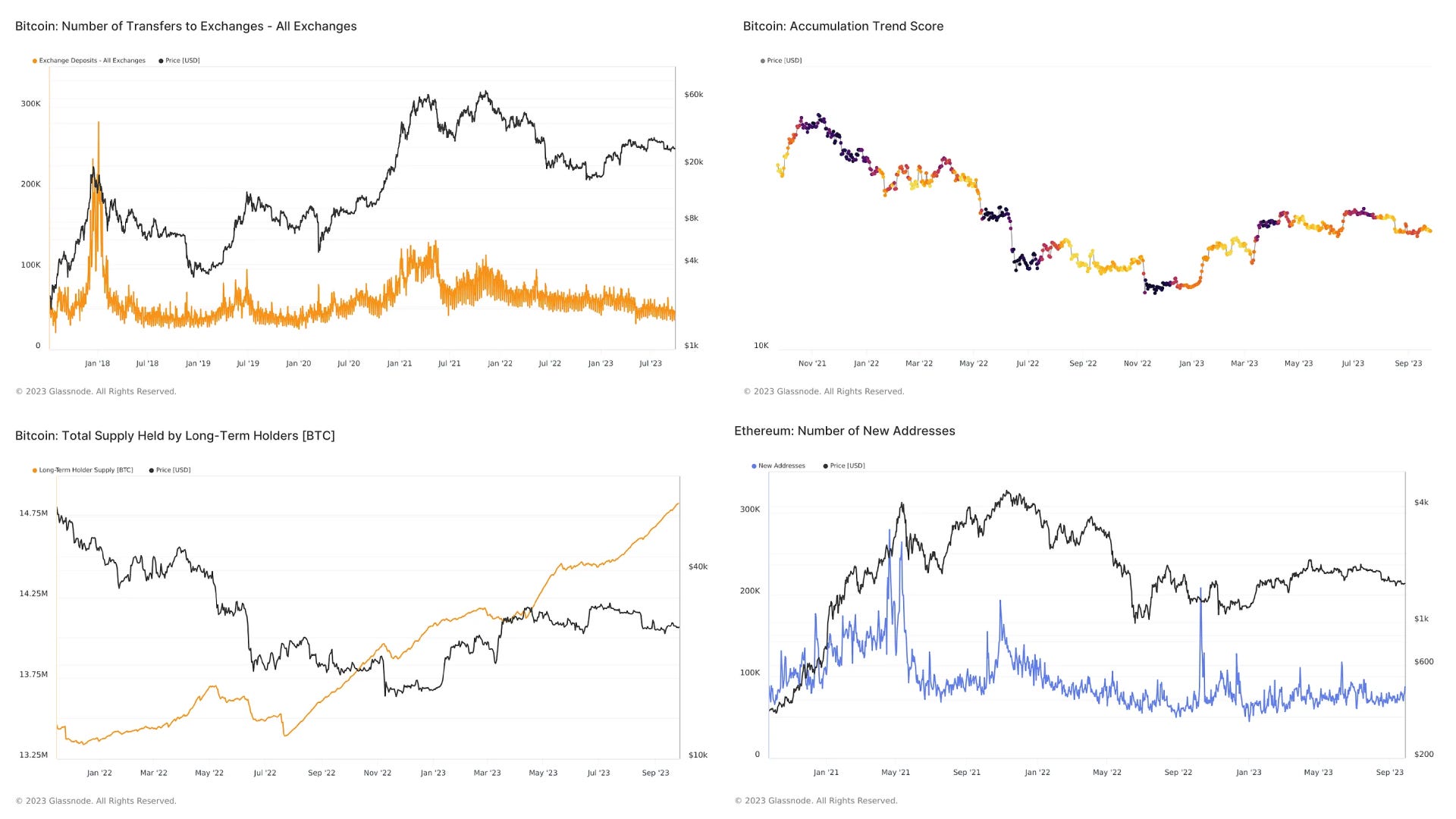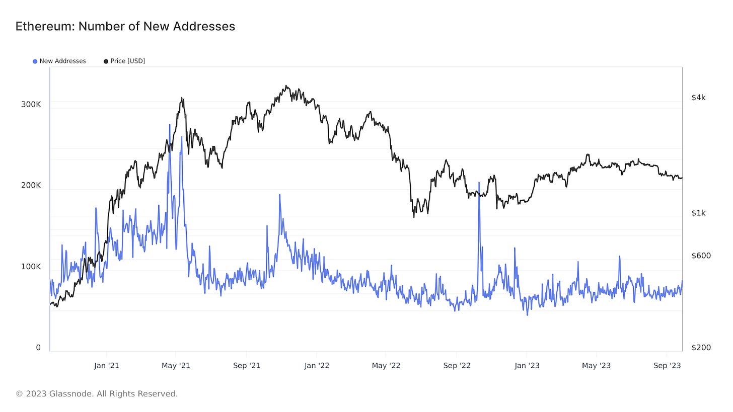 The Bitcoin deposits on centralized exchanges may be a cause of concern, but according to some data on other chains, this may not be the case. In the month of September, ETH Addresses have increased by 8.81% vs August. This is a major jump from addresses created and is the largest jump in the past 90 days, although still low compared to 1-year averages. This is also still above the generational low from September 2022. This could be a sign of rising interest from DeFi protocols and social projects like Friend Tech, but also worth noting that ETH on-chain transactions can also be used to store Bitcoin transactions like Wrapped BTC.