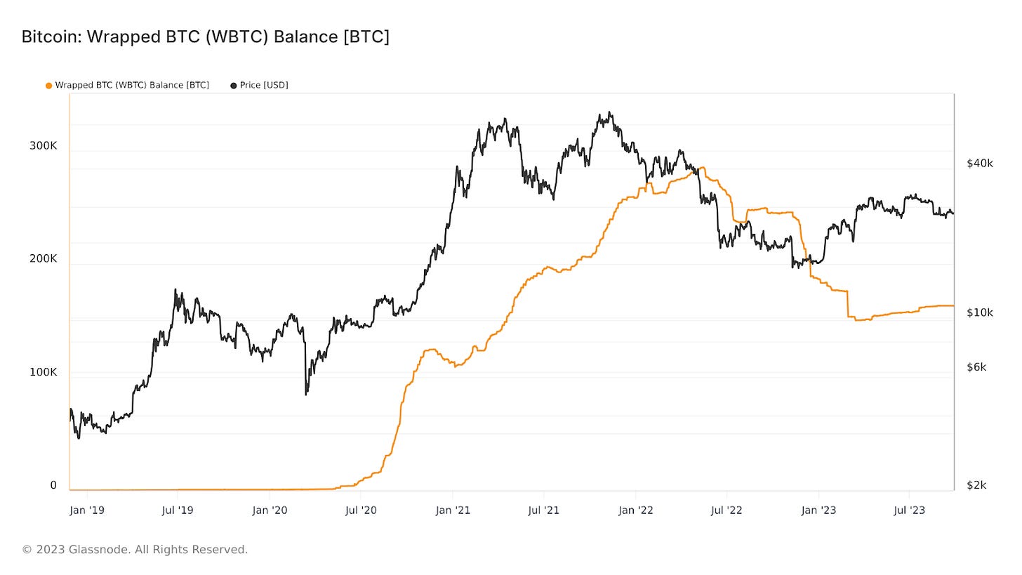 Taking a further look at wallets that engage on the Ethereum network, we can see that Wrapped Bitcoin (WBTC) has increased by 10.5% in the past 6 months. This increase is the largest surge in Wrapped Bitcoin in 2023 and the third largest increase in the past 18 months. This coincides with the idea that, despite overall deposits on exchanges being low, there is value being held on-chain. Combined with the long term holding and accumulation data, Bitcoin has been bought up more in recent months than in the past two years, showing favour to longterm accumulation.